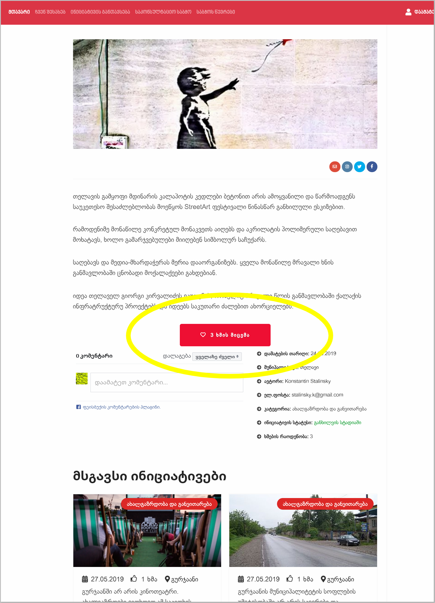 პირს შეუძლია ხმა მისცეს შერჩეულ ინიციატივას გვერდზე ღილაკზე „მიეცი ხმა ინიციატივას“